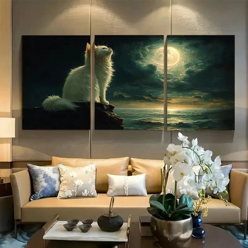 3pcs Cat on the Clouds Moon Gazing Design Metal Print Ready to Hang Art