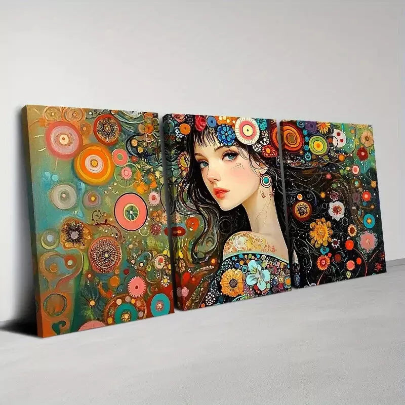3pcs Charming Fashion Abstract Women with Floral Wall Art Set Canvas Framed 40x60cm - High Quality Print 100% Australian Made Wall Canvas Ready to Hang