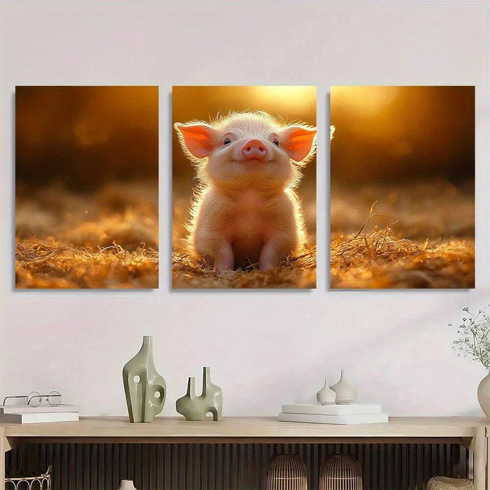 3pcs Charming Piglet Vibrant Sunset Metal Print Ready to Hang Art