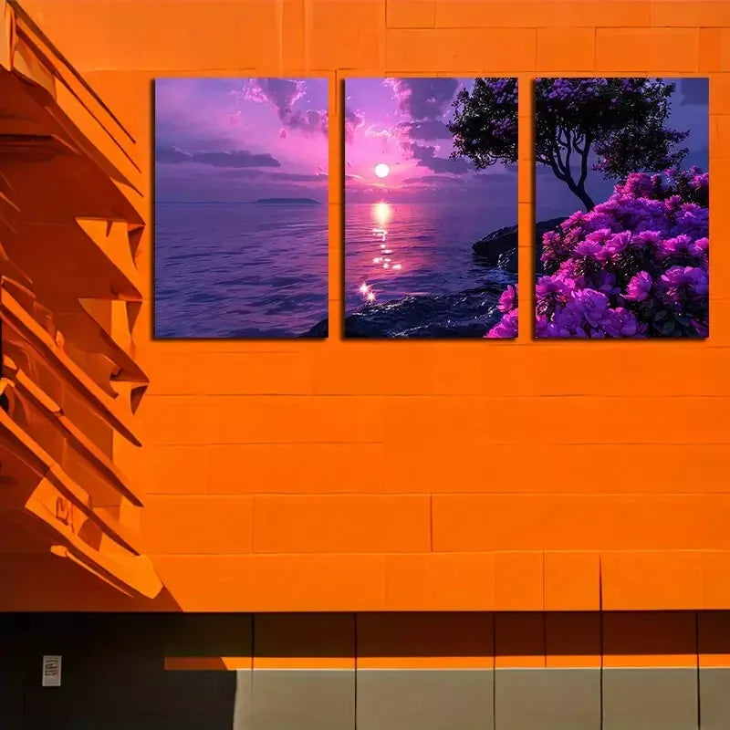 3pcs Cherry Blossom Lake Sunset Canvas Framed 40x60cm - High Quality Print 100% Australian Made Wall Canvas Ready to Hang