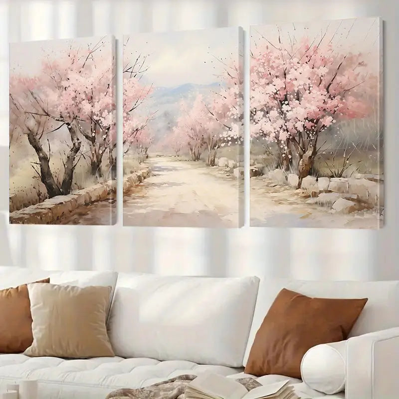 3pcs Cherry Blossom Landscape Wall Art Set Canvas Framed 40x60cm - High Quality Print 100% Australian Made Wall Canvas Ready to Hang