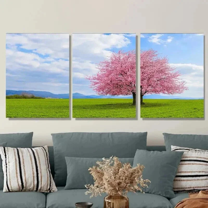 3pcs Cherry Blossom Tree Pink Green Wall Art Set Canvas Framed 40x60cm - High Quality Print 100% Australian Made Wall Canvas Ready to Hang