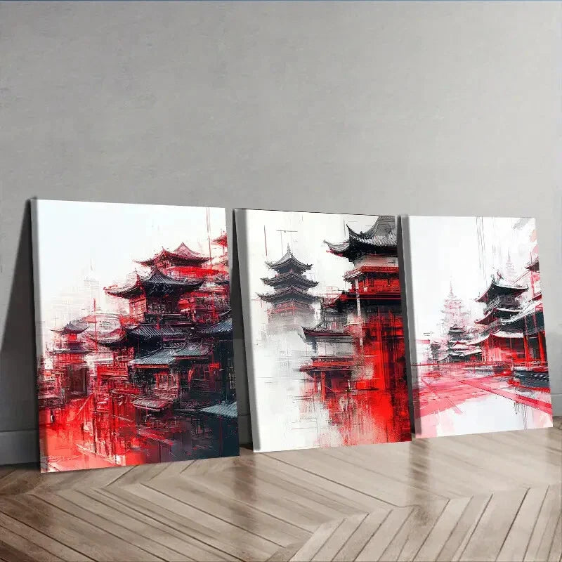 3pcs Chinese architecture Wall Art Set Canvas Framed 40x60cm - High Quality Print 100% Australian Made Wall Canvas Ready to Hang