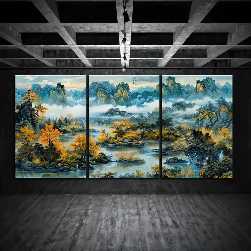 3pcs Chinese Style Landscape Painting Canvas Framed 40x60cm - High Quality Print 100% Australian Made Wall Canvas Ready to Hang