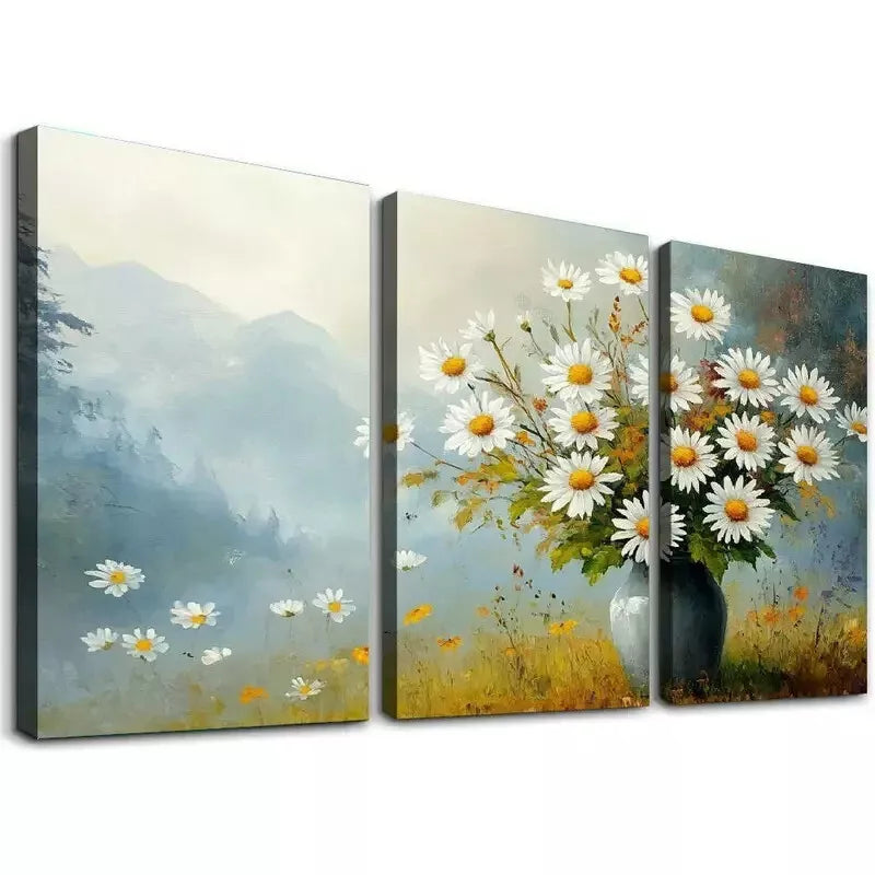 3pcs Classic Daisy Wildflowers & Countryside Wall Art Set Canvas Framed 40x60cm - High Quality Print 100% Australian Made Wall Canvas Ready to Hang