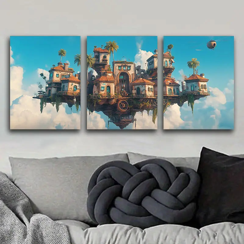 3pcs Classic Modern Floating Island Painting Metal Print Ready to Hang Art