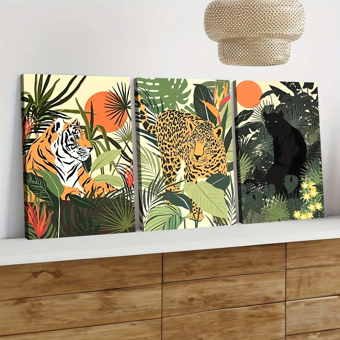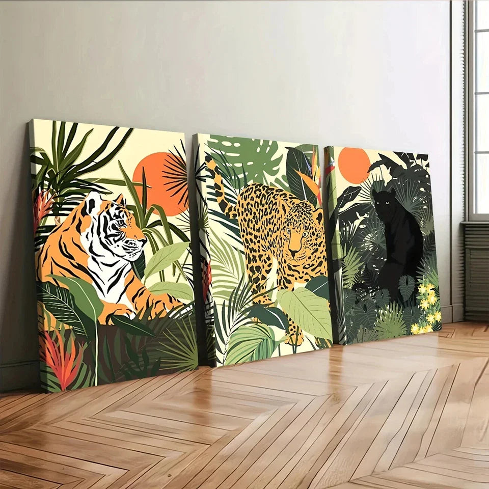 3pcs Classic Modern Jungle Animal Tiger Nature Wall Art Set Canvas Framed 40x60cm - High Quality Print 100% Australian Made Wall Canvas Ready to Hang