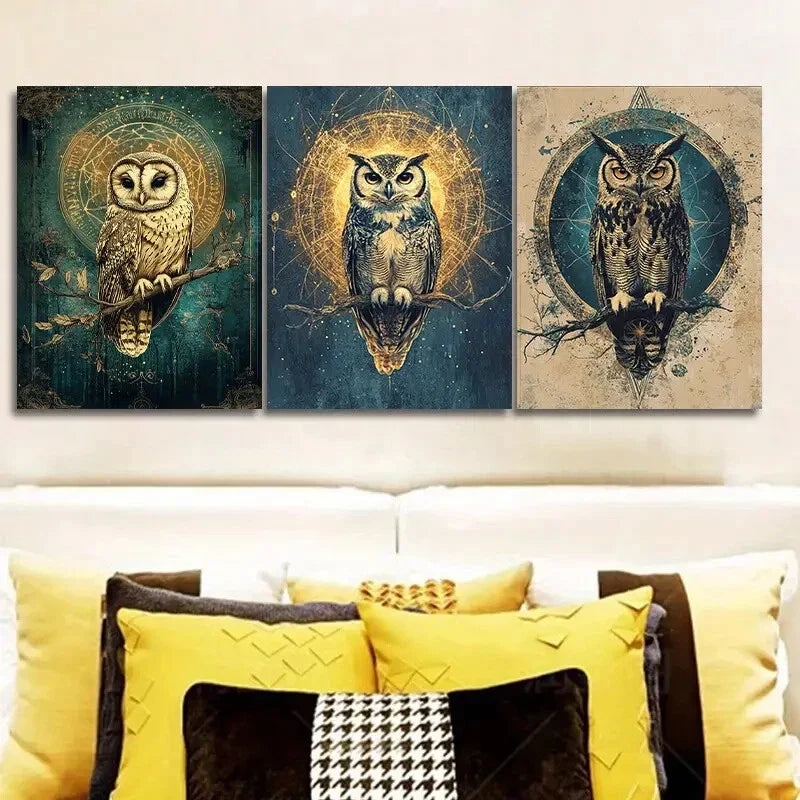 3pcs Classic Modern Owl Wall Art Set Canvas Framed 40x60cm - High Quality Print 100% Australian Made Wall Canvas Ready to Hang