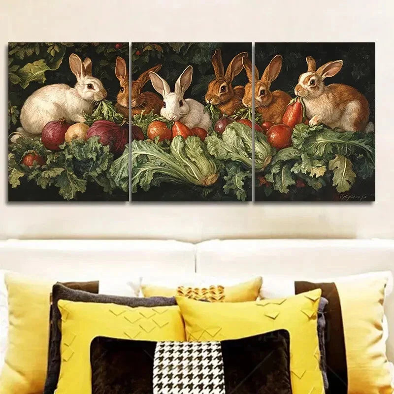 3pcs Classic Modern Rabbit Farm Wall Art Set Canvas Framed 40x60cm - High Quality Print 100% Australian Made Wall Canvas Ready to Hang