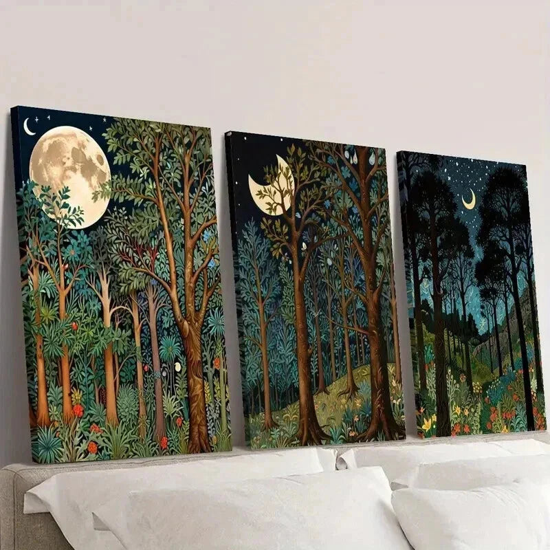 3pcs Classic Moonlit Forest Landscape Wall Art Set Canvas Framed 40x60cm - High Quality Print 100% Australian Made Wall Canvas Ready to Hang