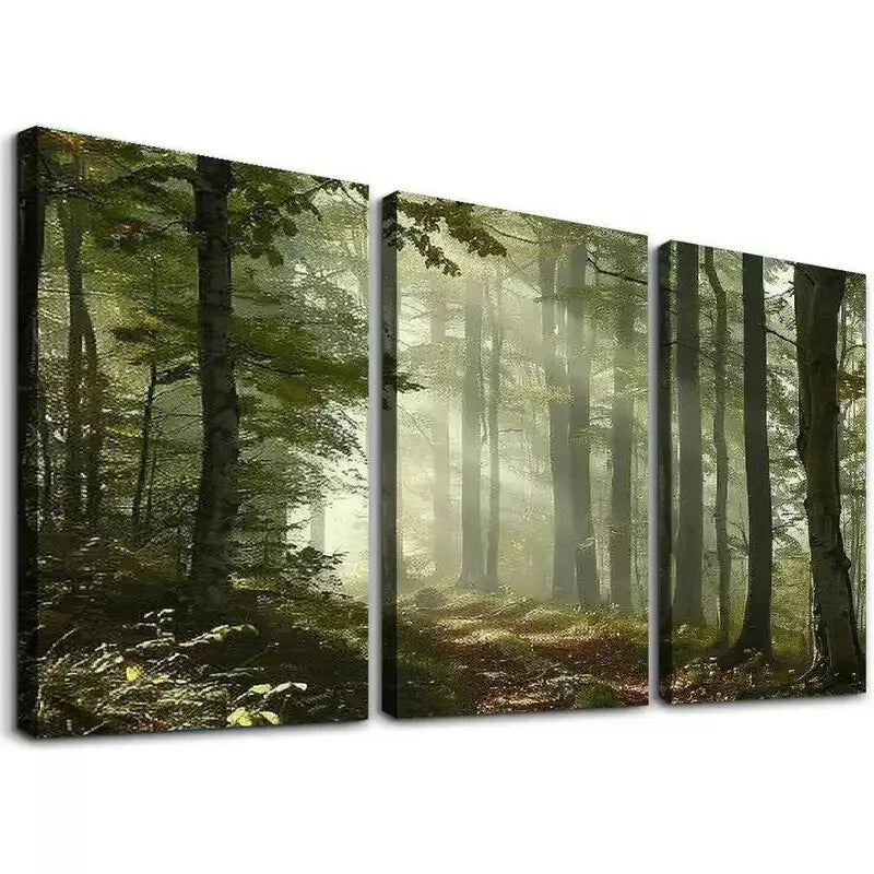 3pcs Classic Style Green Fall Forest Sun Rays Wall Art Set Canvas Framed 40x60cm - High Quality Print 100% Australian Made Wall Canvas Ready to Hang