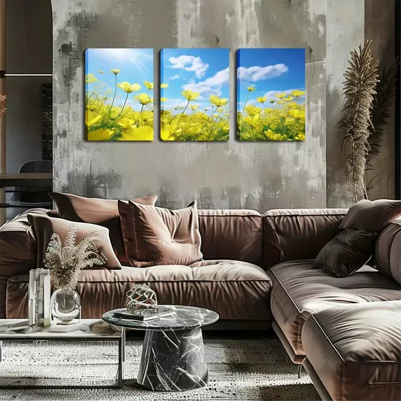 3pcs Clear Sky, Yellow Flowers Wall Art Set Canvas Framed 40x60cm - High Quality Print 100% Australian Made Wall Canvas Ready to Hang