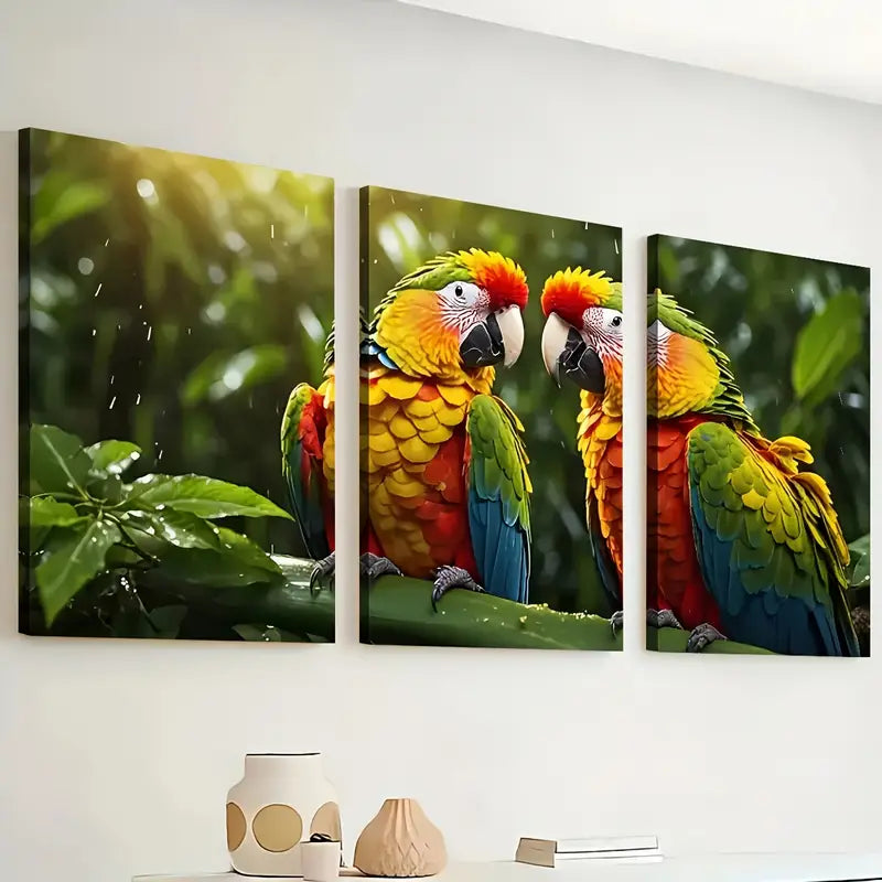 3pcs Close-Up Images of Parrot Bird Parrot Wall Art Set Canvas Framed 40x60cm - High Quality Print 100% Australian Made Wall Canvas Ready to Hang