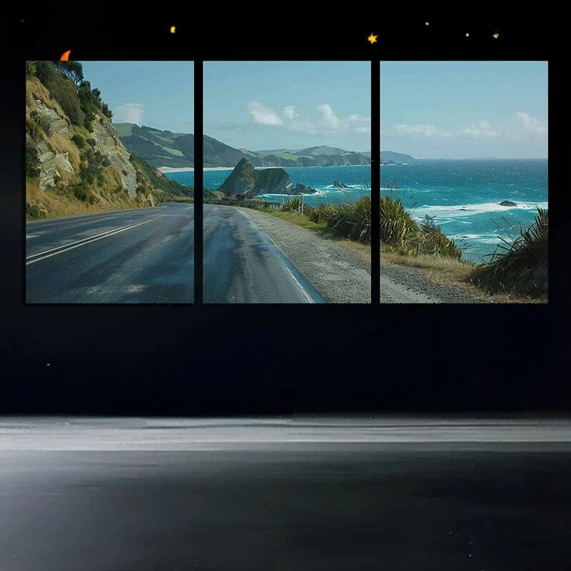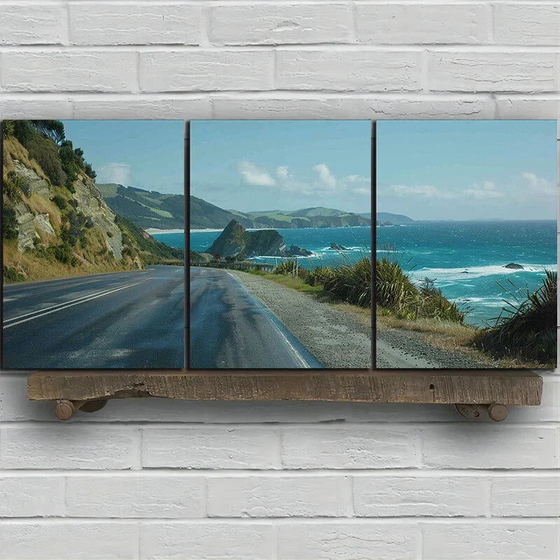 3pcs Coastal Road Seascape Nature Metal Print Ready to Hang Art