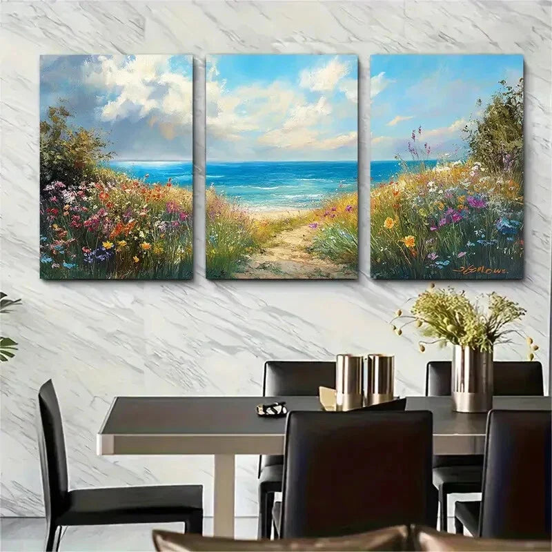 3pcs Coastal Wildflower Field Beach Landscape Metal Print Ready to Hang Art
