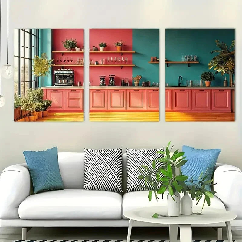 3pcs Cocktail Kitchen Decor Pink Dopamine Metal Print Ready to Hang Art