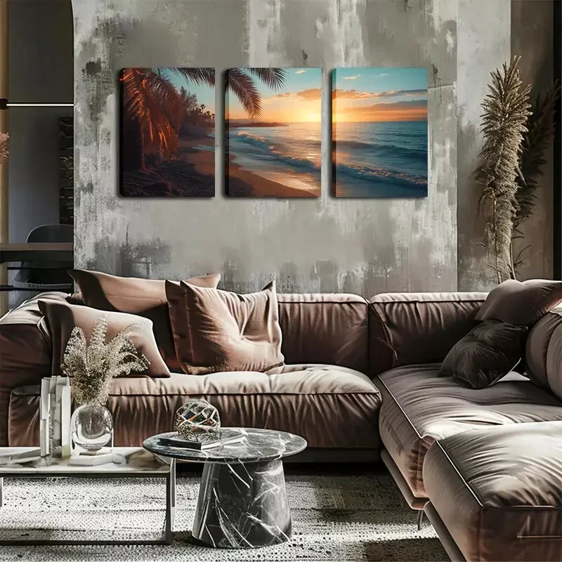 3pcs Coconut Trees & Ocean Waves Wall Art Set Canvas Framed 40x60cm - High Quality Print 100% Australian Made Wall Canvas Ready to Hang