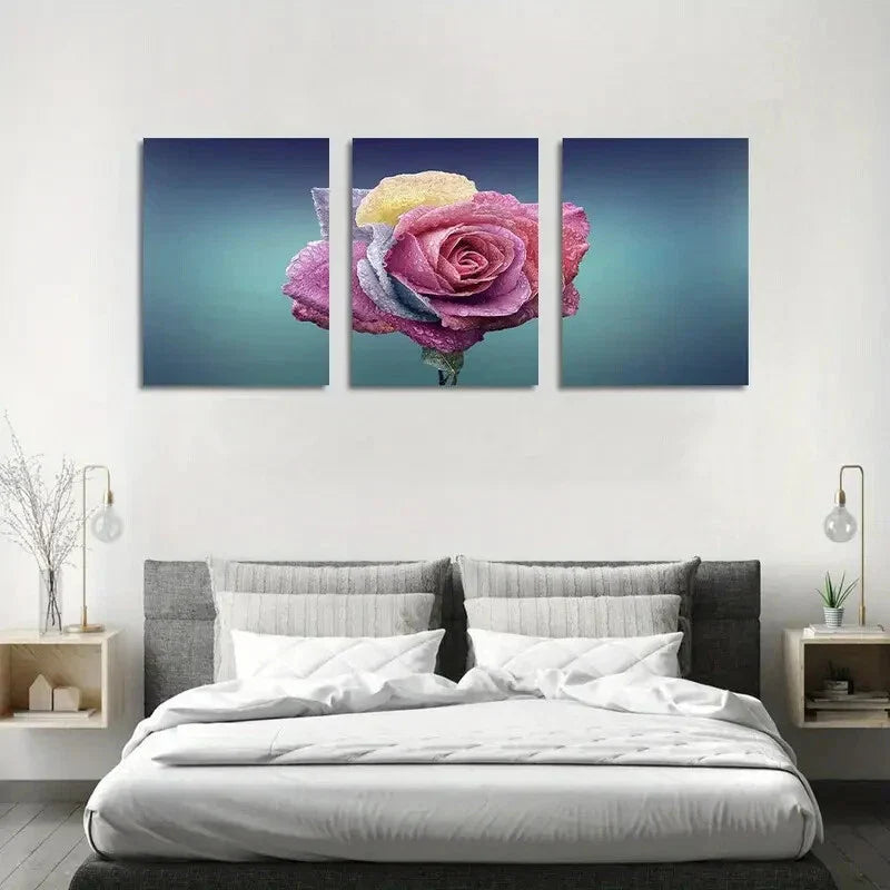 3pcs Colored Roses Beautiful Elegant Metal Print Ready to Hang Art