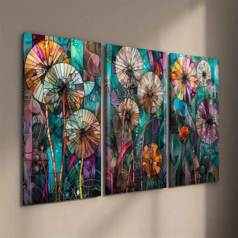 3pcs Colorful Abstract Dandelion Wall Art Set Canvas Framed 40x60cm - High Quality Print 100% Australian Made Wall Canvas Ready to Hang