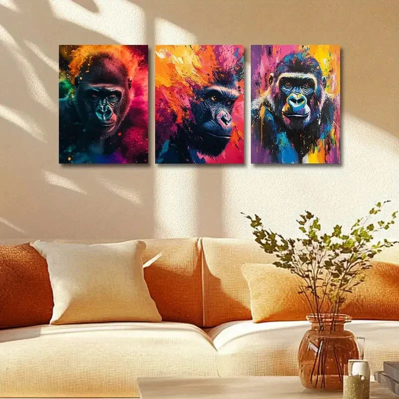 3pcs Colorful Abstract Gorilla Paintings Metal Print Ready to Hang Art