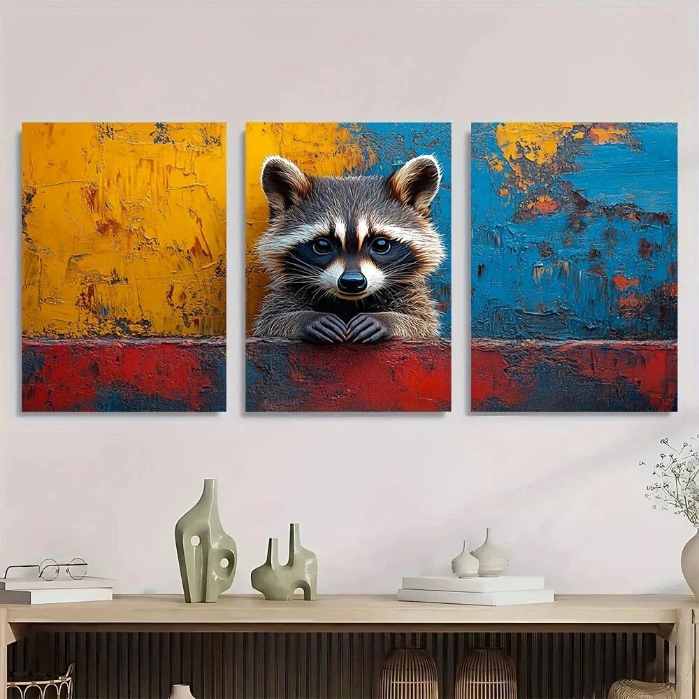 3pcs Colorful Abstract Vibrant Raccoon Metal Print Ready to Hang Art