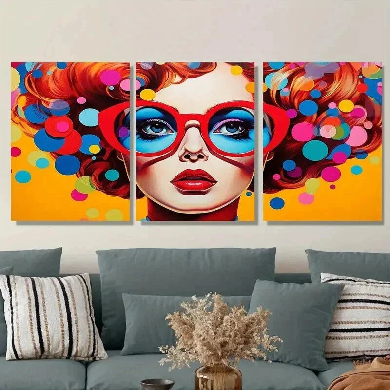 3pcs Colorful Abstract Woman Orange, Blue Wall Art Set Canvas Framed 40x60cm - High Quality Print 100% Australian Made Wall Canvas Ready to Hang