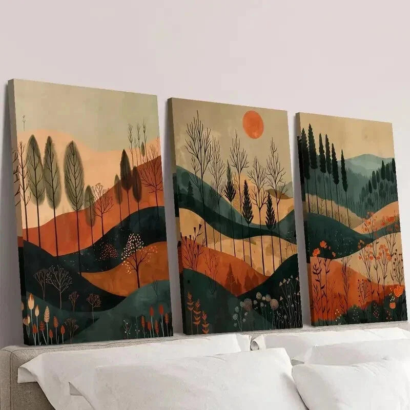 3pcs Colorful Autumn Sunset Forest & Mountain Wall Art Set Canvas Framed 40x60cm - High Quality Print 100% Australian Made Wall Canvas Ready to Hang