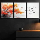 3pcs Colorful Autumn Tree and Birds Theme Wall Art Set Canvas Framed 40x60cm - High Quality Print 100% Australian Made Wall Canvas Ready to Hang