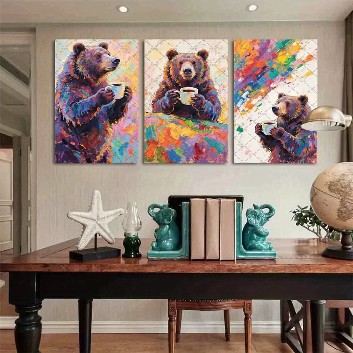 3pcs Colorful Bear Vibrant Abstract Animal Metal Print Ready to Hang Art