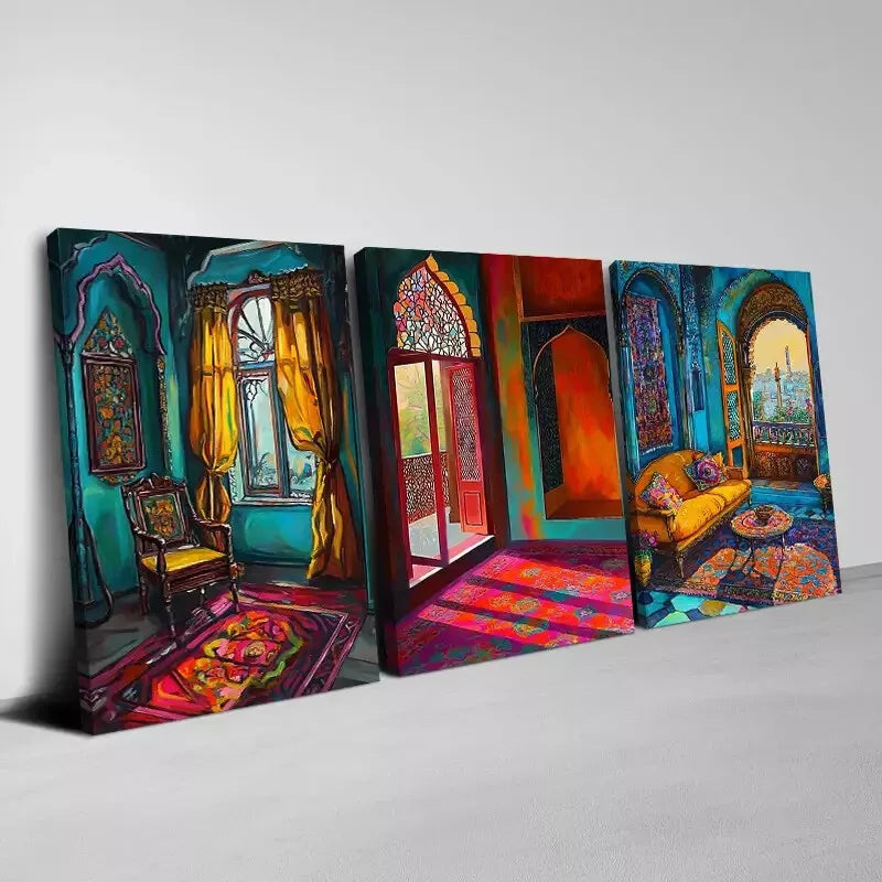 3pcs Colorful Beautiful Indian Architecture Wall Art Set Canvas Framed 40x60cm - High Quality Print 100% Australian Made Wall Canvas Ready to Hang