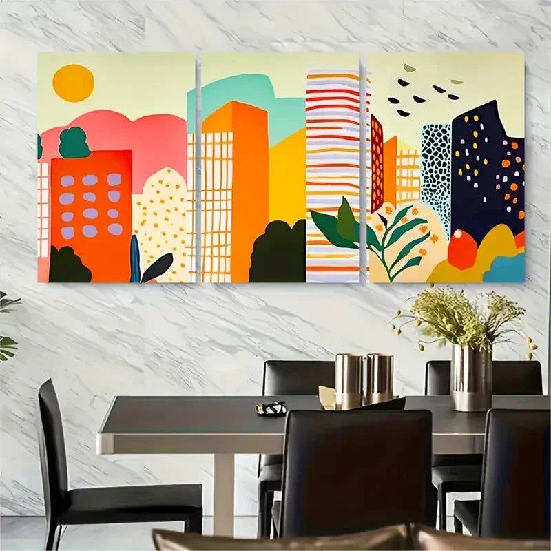 3pcs Colorful City Skyline Skyscrapers Artwork Metal Print Ready to Hang Art