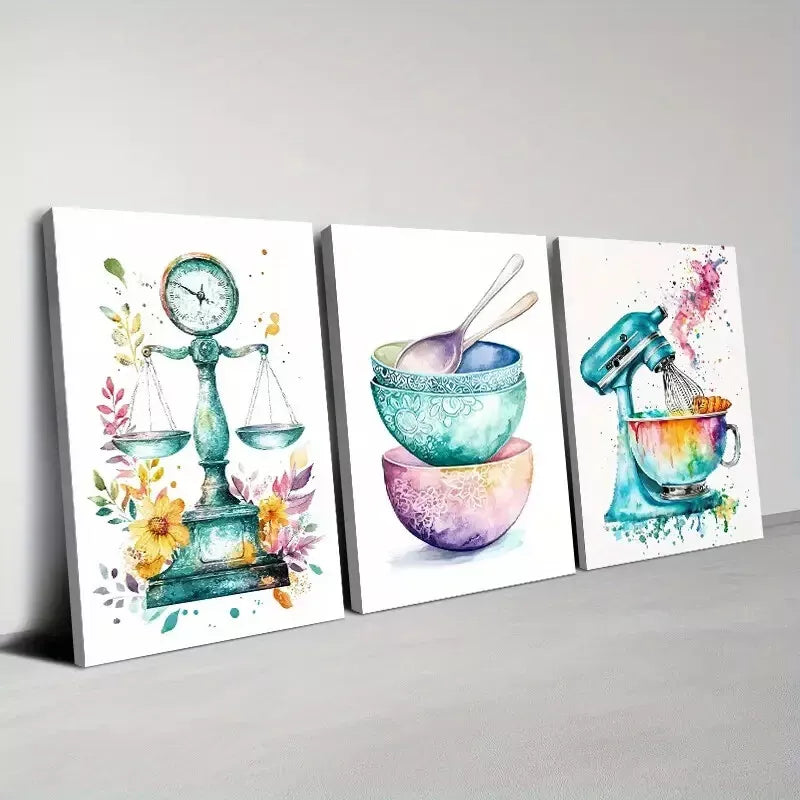 3pcs Colorful Classic Modern Watercolor Kitchen Wall Art Set Canvas Framed 40x60cm - High Quality Print 100% Australian Made Wall Canvas Ready to Hang