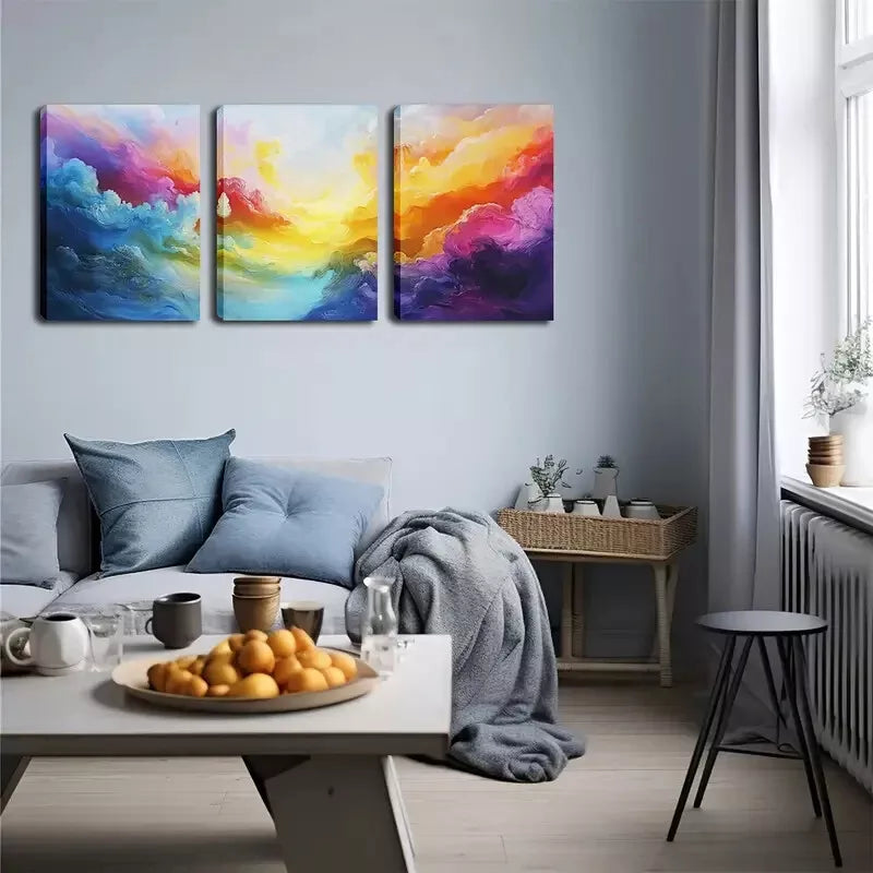 3pcs Colorful Clouds And Sun Wall Art Set Canvas Framed 40x60cm - High Quality Print 100% Australian Made Wall Canvas Ready to Hang