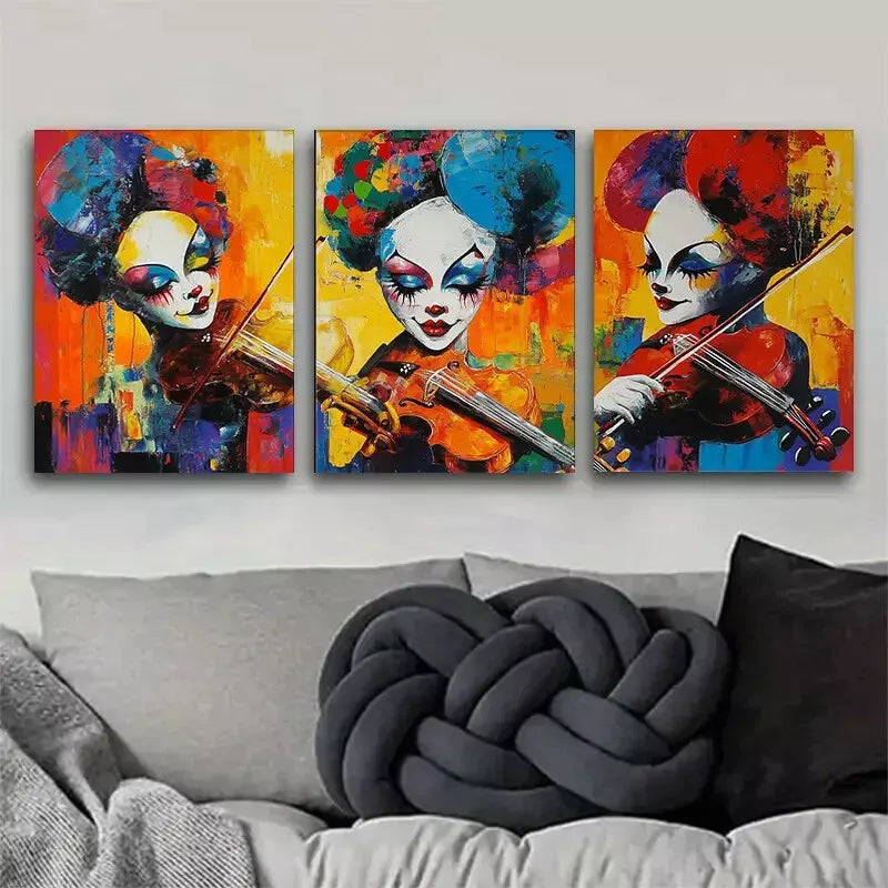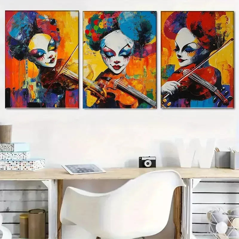 3pcs Colorful Clown Violinist artistic atmosphere Wall Art Set Canvas Framed 40x60cm - High Quality Print 100% Australian Made Wall Canvas Ready to Hang