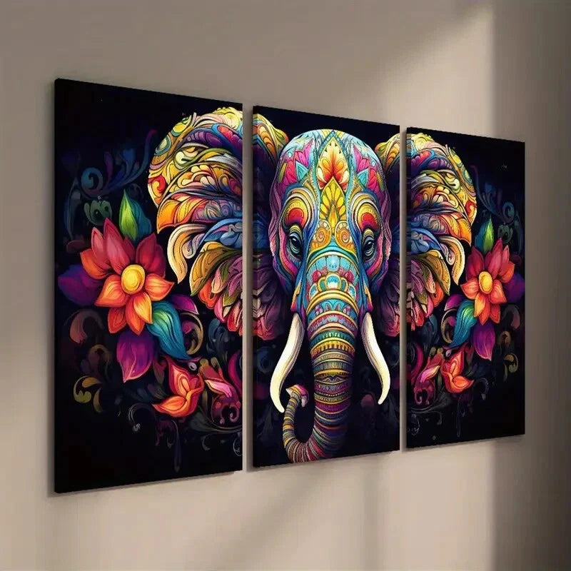 3pcs Colorful Elephant & Floral Wall Art Set Canvas Framed 40x60cm - High Quality Print 100% Australian Made Wall Canvas Ready to Hang