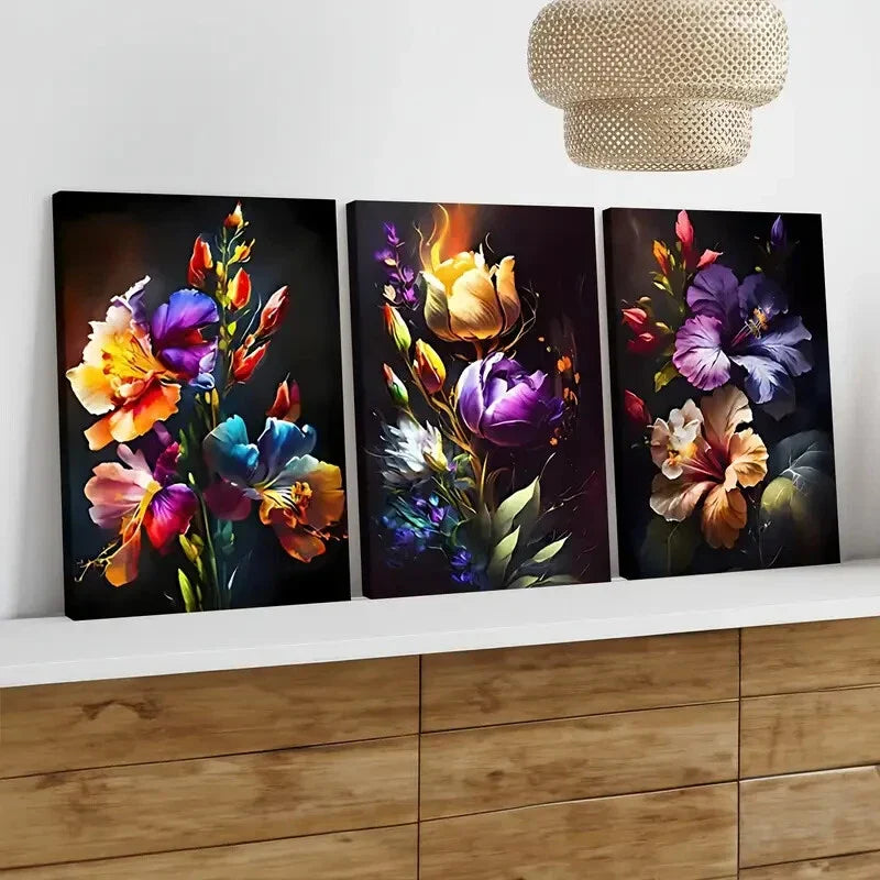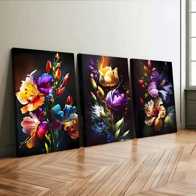 3pcs Colorful Floral Art Elegant Artistic Wall Art Set Canvas Framed 40x60cm - High Quality Print 100% Australian Made Wall Canvas Ready to Hang