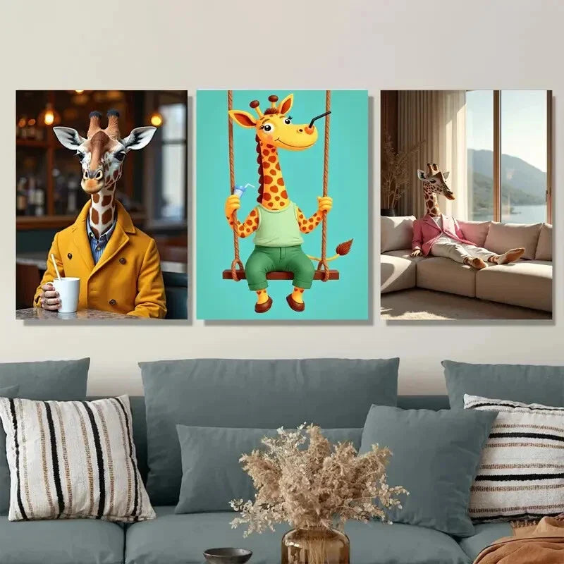 3pcs Colorful Giraffe Whimsical Modern Painting Wall Art Set Canvas Framed 40x60cm - High Quality Print 100% Australian Made Wall Canvas Ready to Hang