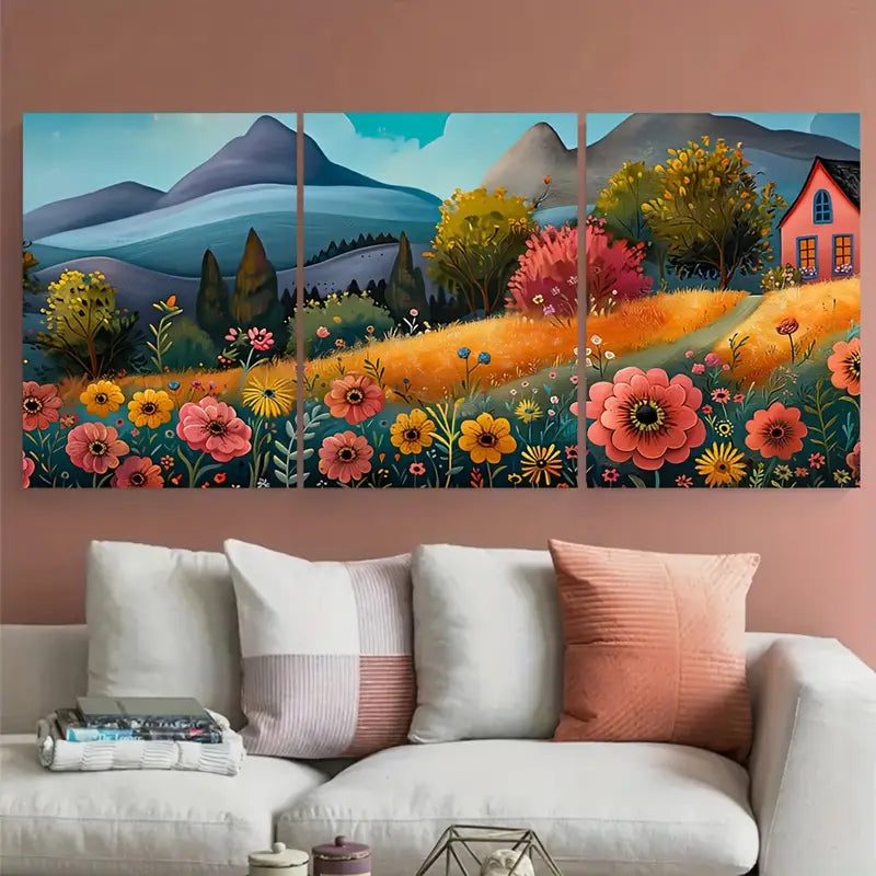 3pcs Colorful Meadow Cheerful Flowers Metal Print Ready to Hang Art