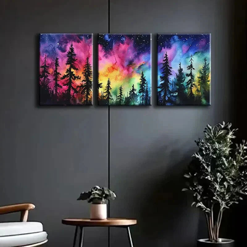 3pcs Colorful Night Sky Forest Painting Perfect Wall Art Set Canvas Framed 40x60cm - High Quality Print 100% Australian Made Wall Canvas Ready to Hang
