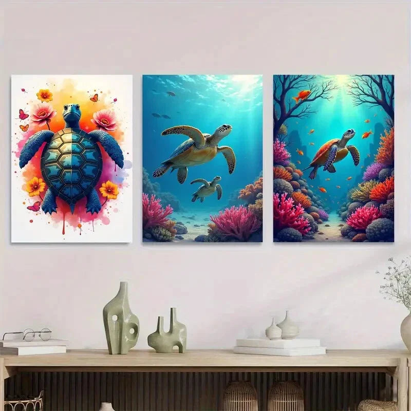 3pcs Colorful Ocean Coral Reefs Marine Creatures Wall Art Set Canvas Framed 40x60cm - High Quality Print 100% Australian Made Wall Canvas Ready to Hang