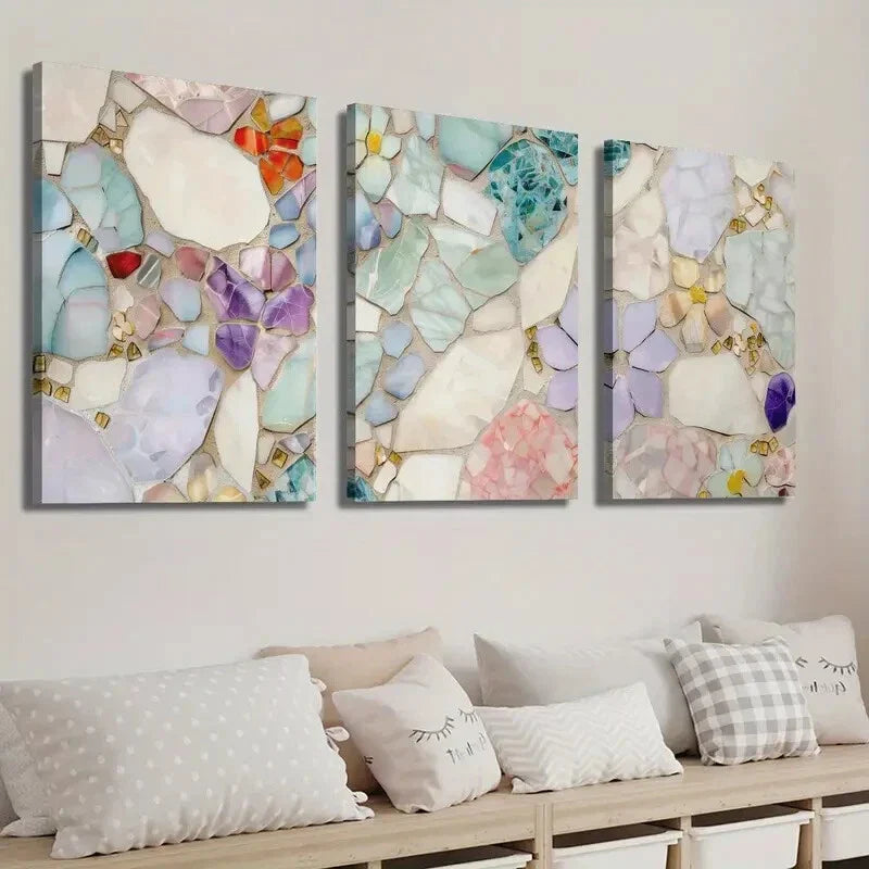 3pcs Colorful Texture Mural Mosaic Floral Wall Art Set Canvas Framed 40x60cm - High Quality Print 100% Australian Made Wall Canvas Ready to Hang