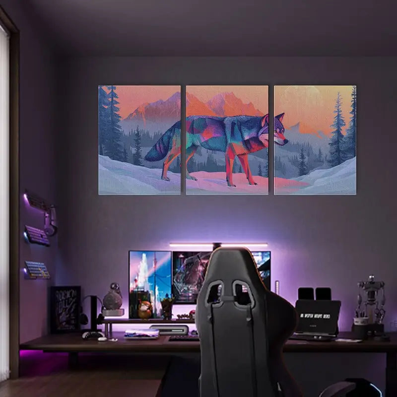 3pcs Colorful Wolf in Winter Vibrant Painting Metal Print Ready to Hang Art