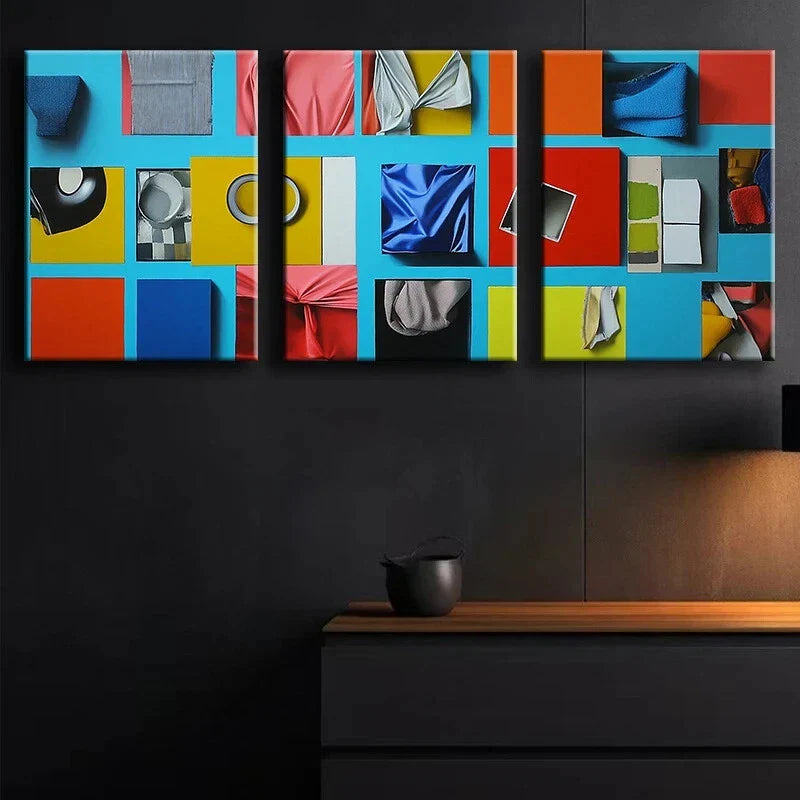 3pcs Colourful Fantasy Blocks Blue Themed Metal Print Ready to Hang Art