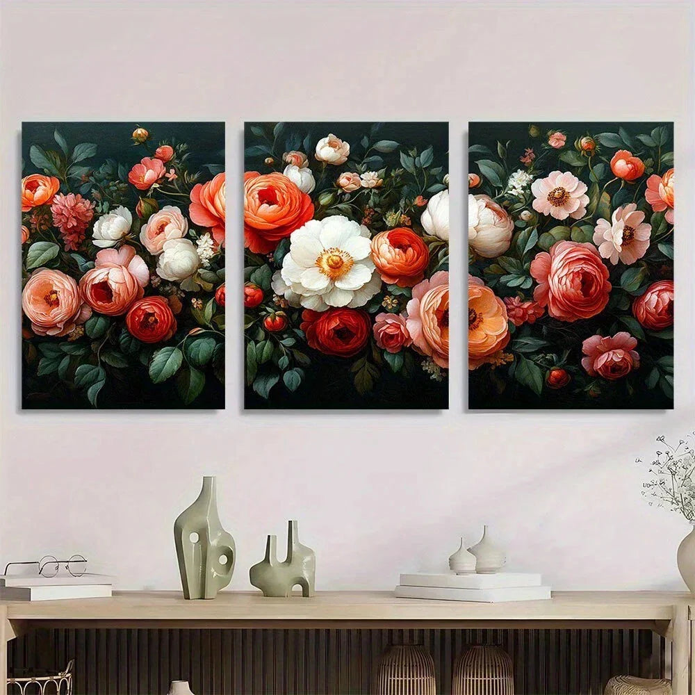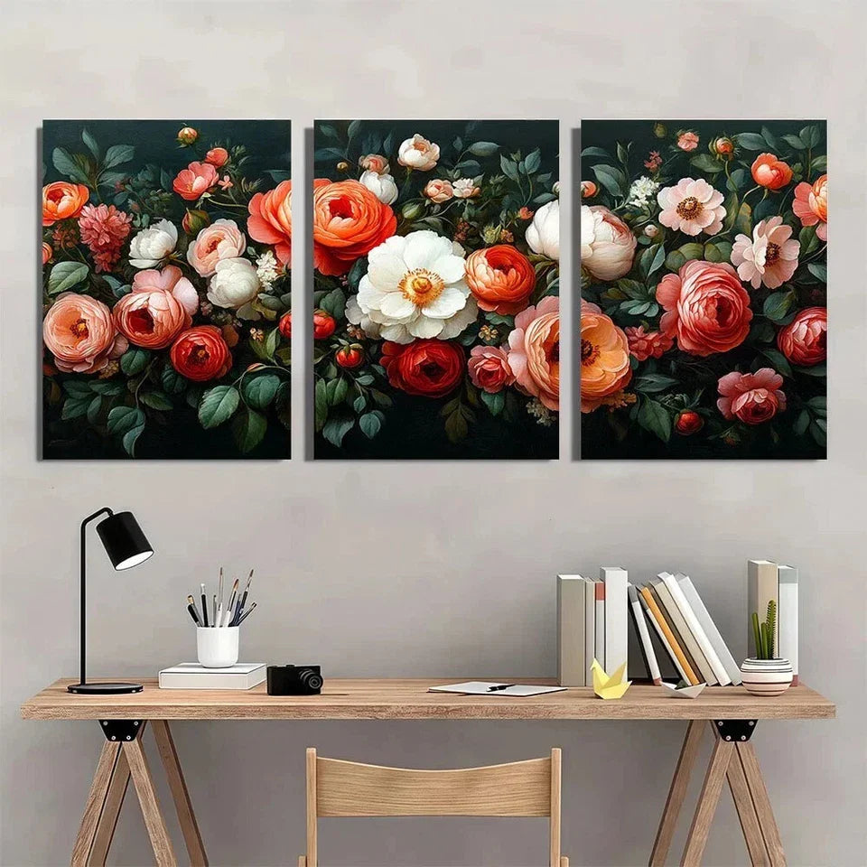3pcs Colourful Flowers Green Leaves Metal Print Ready to Hang Art