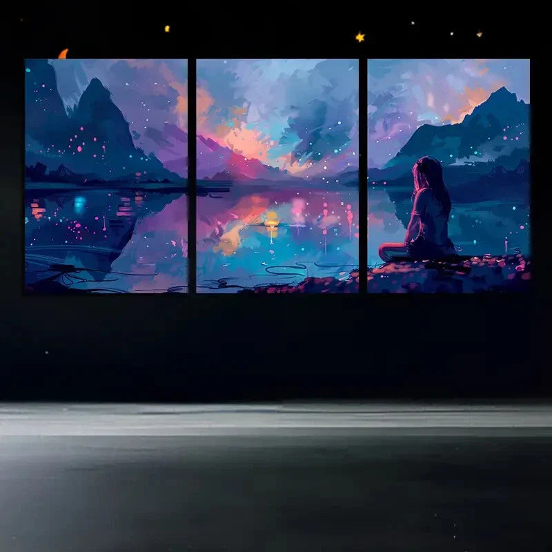 3pcs Colourful Mountain Blue & Pink Metal Print Ready to Hang Art