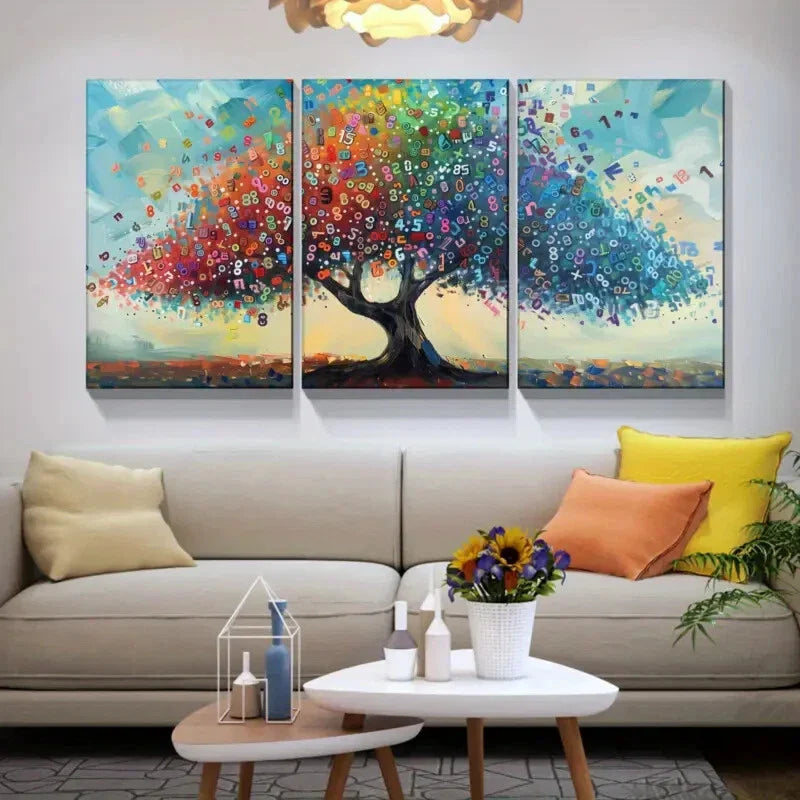3pcs Colourful Number Tree Painting Metal Print Ready to Hang Art