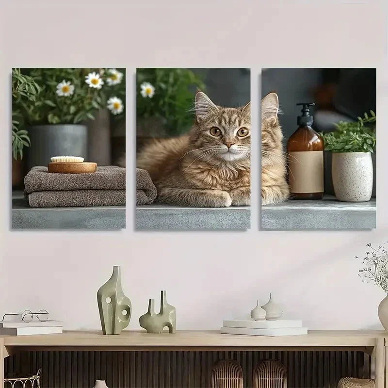 3pcs Comfort Charming Wash Your Small Paws Cat Metal Print Ready to Hang Art