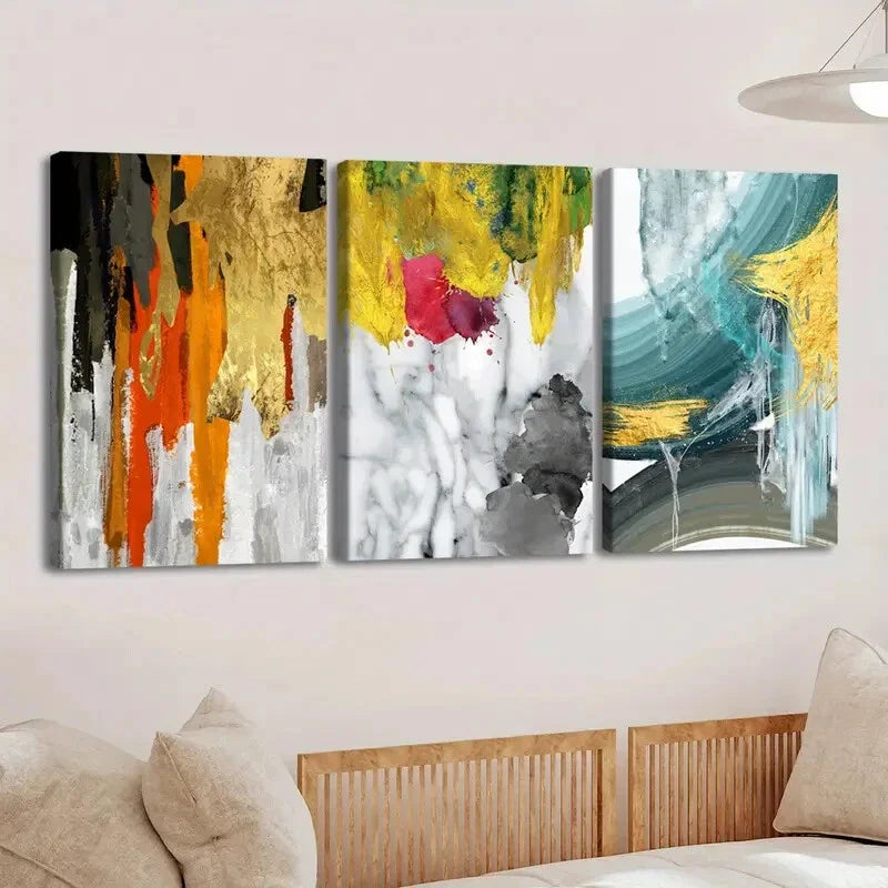 3pcs Cool Nordic Style Abstract Geometry Colors Wall Art Set Canvas Framed 40x60cm - High Quality Print 100% Australian Made Wall Canvas Ready to Hang