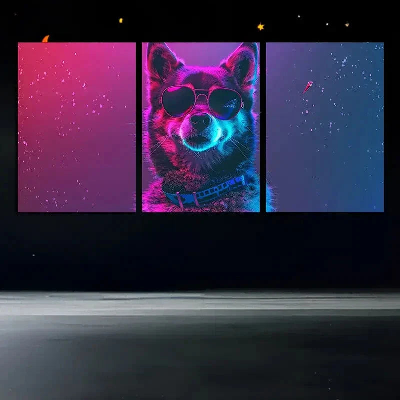 3pcs Cool-Toned Husky with Glasses Metal Print Ready to Hang Art