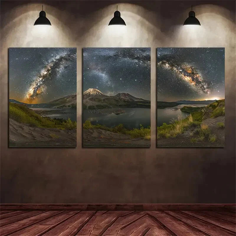 3pcs Cosmic Mountain Scenery Starry Sky Galaxy Metal Print Ready to Hang Art